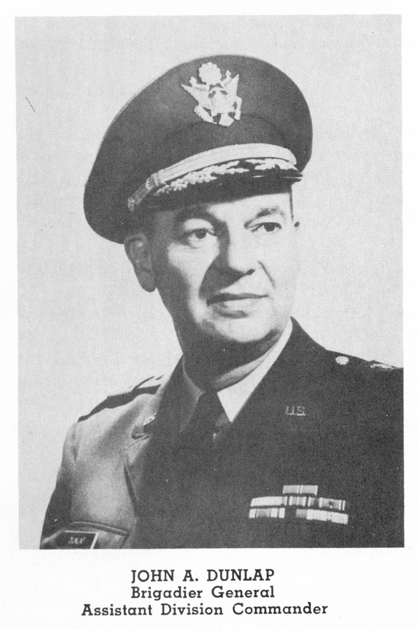| Maj. Gen. John A. Dunlap | 1 July 1963 to ca. 1966 | Graduated Milwaukee’s West Division H. S. in ‘25 (Gen. Douglas MacArthur was an alumnus of the same school); enlisted in Wisconsin National Guard at Whitefish Bay armory 1 Sep. ‘31; earned law degree from U. of Wis. in ‘32; attained rank of Sgt. before being commissioned 2d Lt., artillery, on 19 Jun. ‘34; 1st Lt. in ‘37; Capt. and btry. cdr. in 121ST FA in ‘40; Maj. in ‘42; saw combat in North Africa and Italy during WWII (Naples-Foggia, Rome-Arno, Northern Apennines, Po Valley, and Etria-Trieste campaigns); battlefield promotion to Lt. Col. ca. ‘45; Col. in ‘55; XO of 32D Div. Arty. ca. ‘55; Cdr. of 32D Div. Arty. in ‘56; Brig. Gen. ca. ‘59; Asst. Div. Cdr. during Berlin Crisis; assumed command of 32D Div. on 1 Jul. ‘63; his son, John L. Dunlap, was enlisted Soldier with the Div. during Berlin Crisis and was Lt. in the Div. when Maj. Gen. Dunlap assumed command of Div.; awards include Bronze Star, European-African-Middle Eastern Campaign Medal w/5 battle stars, and ribbon for over 30 years’ service with WNG. |